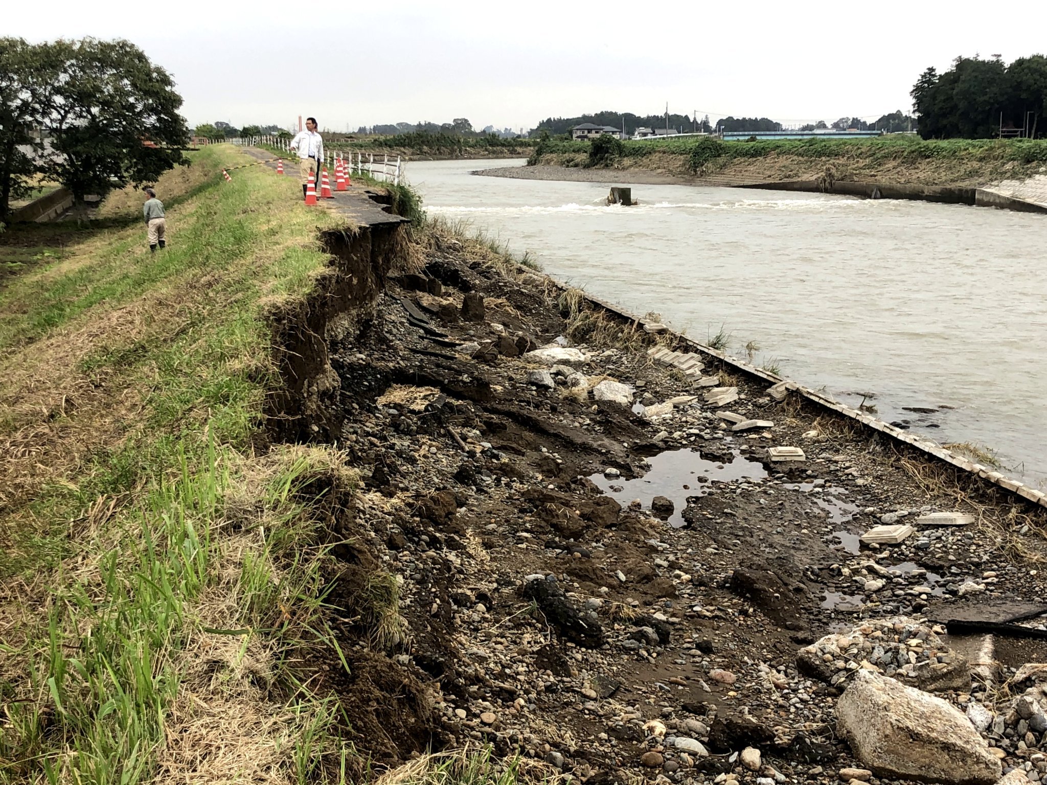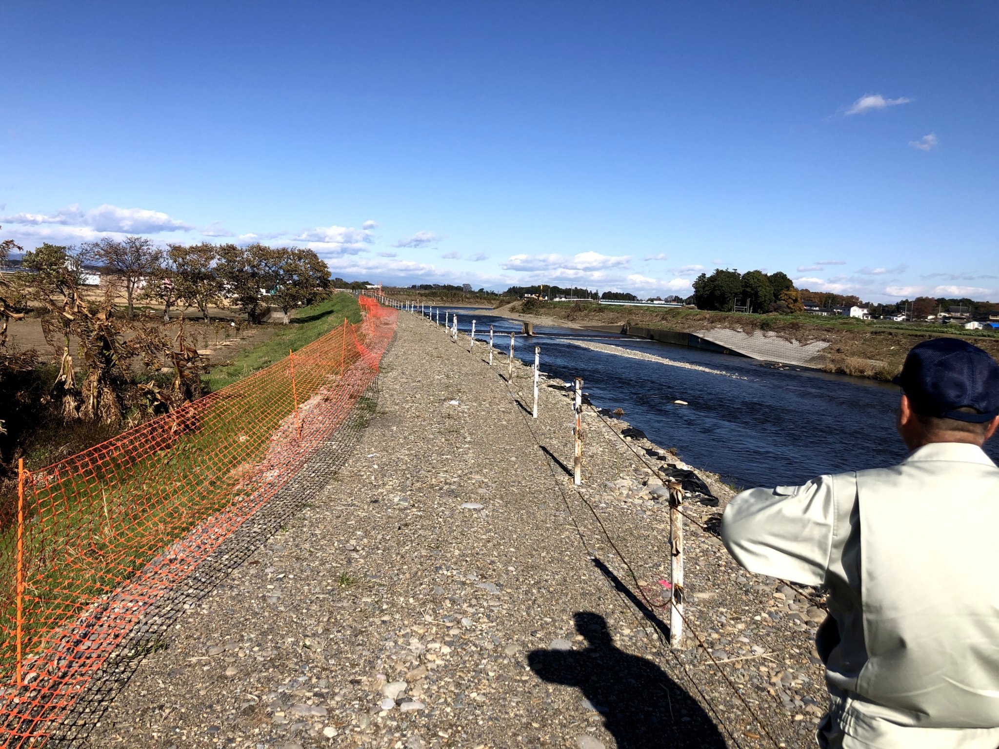 田川の堤防です。決壊寸前で済みました。その後の復旧で
